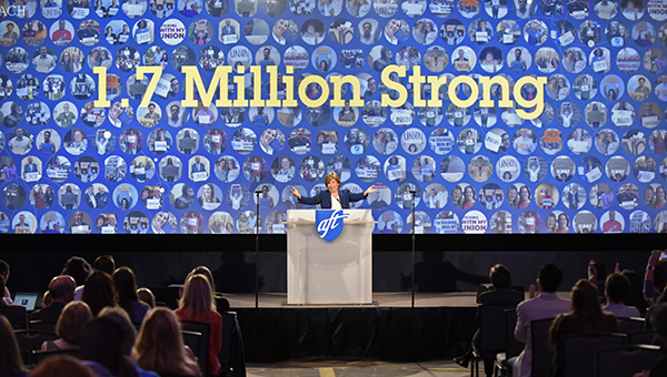 Weingarten lifted up education and labor as two powerful levers for change. “This is not the first time our democracy has been at risk—but today its survival falls on us,” she said. “We are part of two institutions that are essential to the American dream—public education and the labor movement. Public schools and labor unions are the direct pathways to broad-based prosperity and pluralism. They are how people can achieve a better life. And you—AFT members—are at the nexus of both.”